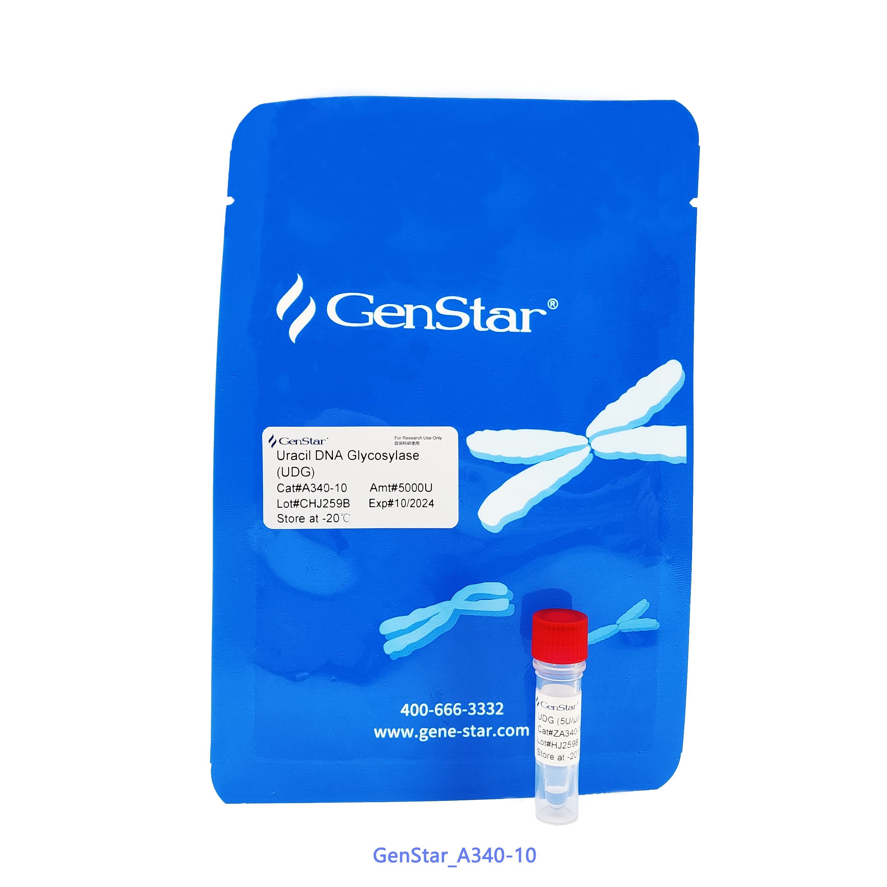 本產(chǎn)品為大腸桿菌來源的重組尿嘧啶 DNA 糖基化酶(UDG),可催化水解含有尿嘧啶的 DNA 鏈和糖磷酸骨架的 N-糖苷鍵,釋放游離尿嘧啶。UDG 能有效水解單鏈或雙鏈 DNA 上的尿嘧啶,但對寡聚核苷酸(<6 個(gè)堿基)和 RNA 無活性。
