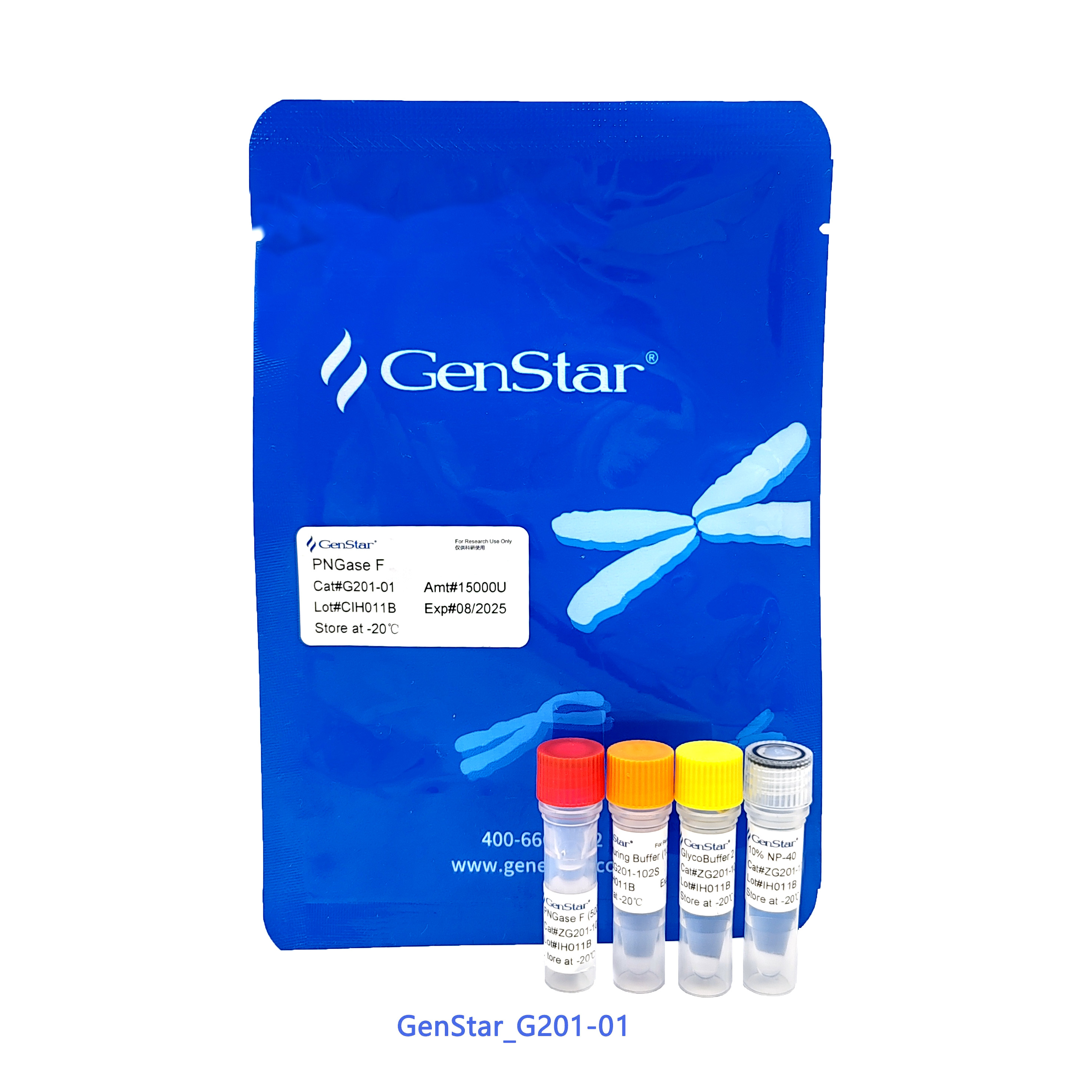 肽N-糖苷酶 F(PNGase F)是一種酰胺水解酶,克隆自和平空間站伊麗莎菌(Elizabethkingia miricola, formerly Flavobacteriummeningosepticum),在大腸桿菌中重組表達(dá)。PNGase F 可以裂解由天冬酰胺連接的高甘露糖,及雜合和復(fù)雜的寡糖糖蛋白。PNGase F 切割位點(diǎn)為糖蛋白內(nèi)側(cè) N-乙酰葡萄糖胺(GlcNAc)和天冬酰氨殘基之間的酰胺鍵,同時(shí)將酶解后蛋白上的天冬氨酰轉(zhuǎn)化為天冬氨酸,而不會(huì)去除常見植物糖蛋白上含有核心 α-(1,3)-巖藻糖 連接的寡糖。本產(chǎn)品常應(yīng)用于抗體及其相關(guān)蛋白完全去糖基化。