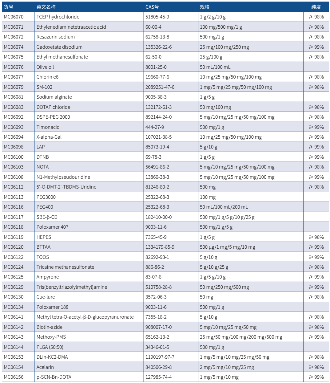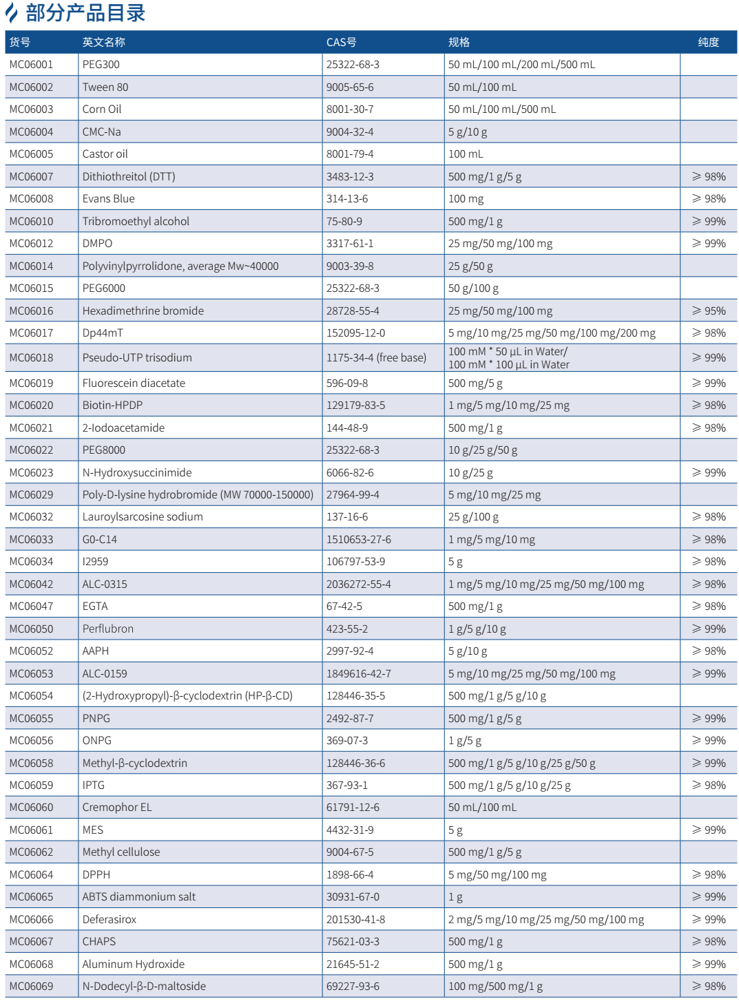 本界面只顯示部分產(chǎn)品信息,若想獲取更多小分子系列產(chǎn)品信息,請聯(lián)系我們銷售或致電技術支持熱線:400-666-3332