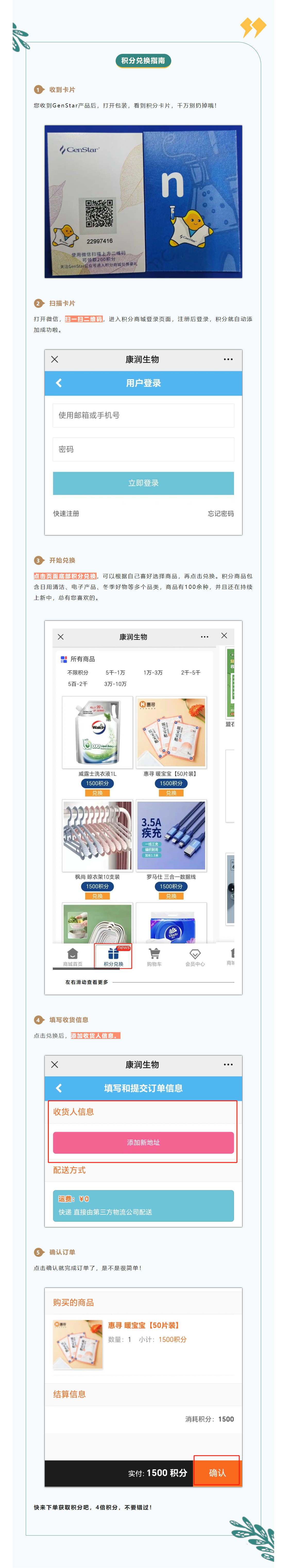 作為GenStar產(chǎn)品忠實用戶,不會用積分,那豈不是錯過了一個億?積分可用于GenStar積分商城(點擊進入)兌換禮品,積分越多,禮品越優(yōu)厚。不知道怎么操作?別擔心,來看看下方的兌換指南!