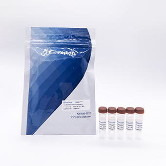 本產(chǎn)品是采用 SYBR Green I 嵌合熒光法進(jìn)行實(shí)時(shí)熒光定量 PCR 的專用 2× 濃度預(yù)混液。產(chǎn)品含有優(yōu)化濃度的 GenStar Power HSTaq DNA Polymerase、SYBR Green I、dNTPs、Mg2+、反應(yīng)緩沖液和穩(wěn)定劑等成分。主要用于基因組 DNA 靶序列和 RNA 反轉(zhuǎn)錄后 cDNA 靶序列的檢測(cè)。Power HSTaq DNA Polymerase 在 75℃ 以下溫度沒有活性, 從而有效避免在常溫條件下由引物和模板非特異性結(jié)合或引物二聚體而產(chǎn)生的非特異性擴(kuò)增,酶的激活需要 95℃ 孵育 10 min。反應(yīng)體系可在室溫下配制,無(wú)需在冰上完成,操作方便。優(yōu)化濃度的 SYBR Green I 熒光染料,特異性地?fù)饺?DNA 雙鏈后,熒光信號(hào)增強(qiáng),而不摻入鏈中 SYBR Green I 染料分子熒光信號(hào)不變,從而保證熒光信號(hào)的增加與 PCR 產(chǎn)物的增加完全同步,熒光可以在退火或延伸階段測(cè)定。 本產(chǎn)品為 2× 預(yù)混化學(xué)修飾型熒光定量 PCR 反應(yīng)體系(含 ROX),使用時(shí)只需加入模板、引物和水,使其工作濃度為 1×,即可進(jìn)行反應(yīng)。具有快速簡(jiǎn)便、靈敏度高、特異性強(qiáng)、穩(wěn)定性好等優(yōu)點(diǎn),可減少人為誤差、節(jié)約 PCR 實(shí)驗(yàn)操作時(shí)間、降低污染幾率。